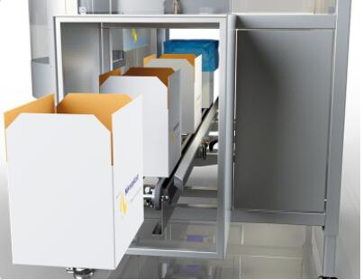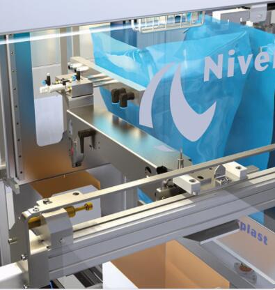 在箱子傳送過程中,預制的袋子由真空夾具抓起。